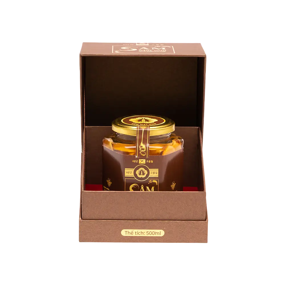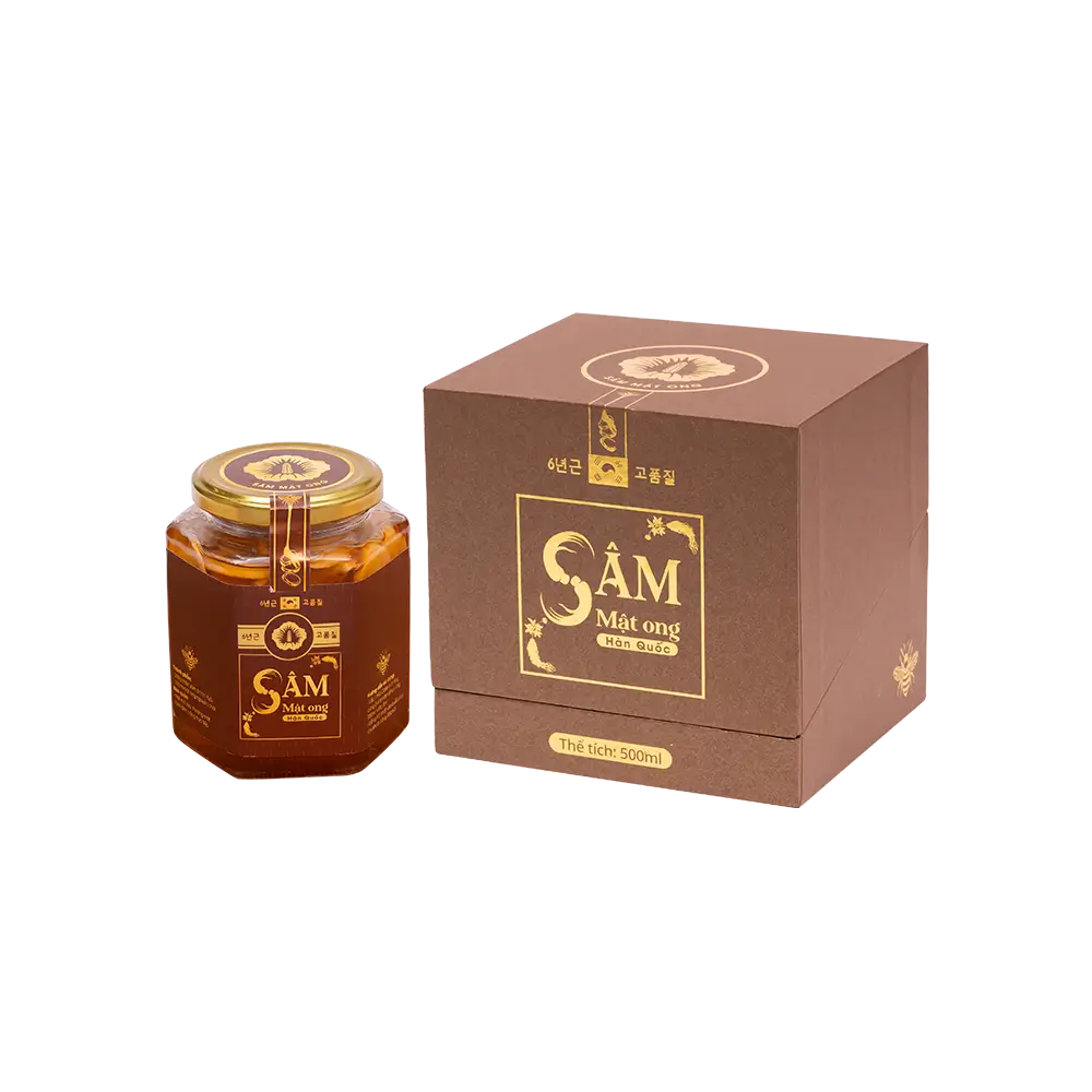 Sâm tươi ngâm mật ong là cách chế biến đơn giản, thuần khiết, đại diện cho nét đẹp văn hóa sử dụng nhân sâm tại Hàn Quốc. Từng lát sâm tươi Hàn Quốc 6 năm tuổi thấm đượm trong mật ong rừng nguyên chất, hòa quyện hương vị trong thời gian đủ dài. Sản phẩm rất phù hợp để quý vị sử dụng chăm sóc sức khỏe gia đình hàng ngày hoặc gửi tặng người thân, bạn bè, đối tác.- Xuất xứ: Hàn Quốc