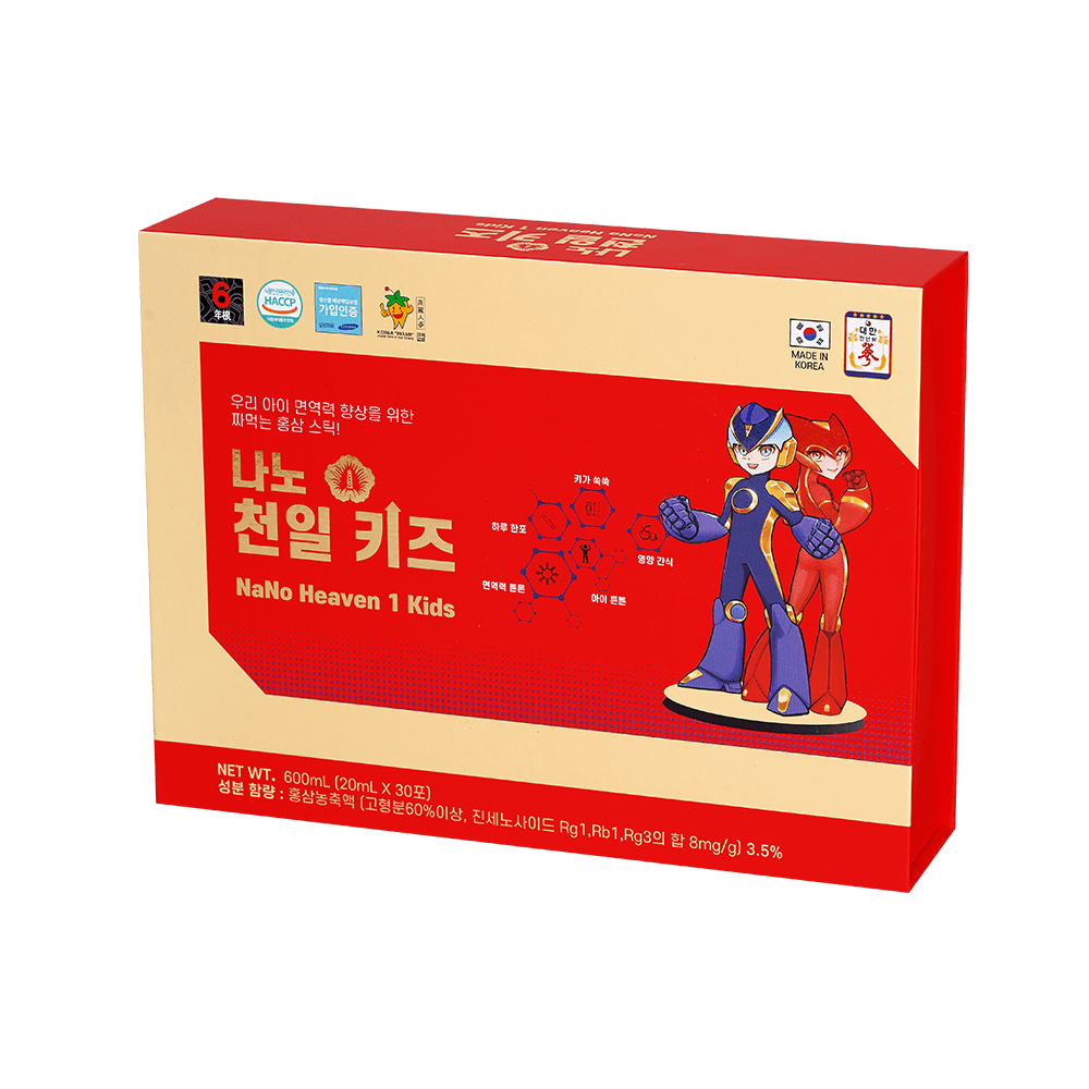 Tinh chất thiên sâm Baby Nano Heaven 1 Kids được tạo nên từ nhân sâm Hàn Quốc thượng hạng kết hợp cùng một số thảo dược tự nhiên. Sản phẩm được trải qua quá trình tinh chế đặc thù nhằm giữ lại những dưỡng chất quý giá từ củ sâm tươi, đồng thời loại bỏ bớt dược tính của nhân sâm để phù hợp với cơ thể trẻ nhỏ.Tinh chất thiên sâm Baby bổ sung thêm những dinh dưỡng quý mà thức ăn khó có thể tổng hợp đủ, từ đó hỗ trợ trẻ phát triển toàn diện cả về thể chất và trí tuệ.- Xuất xứ: Hàn Quốc
